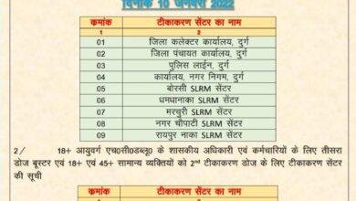 आज से पहले सेकंड डोज वाले फ्रंट लाईन और स्वास्थ्य कर्मी को लगेगा बूस्टर: दुर्ग / नगर पालिक निगम सीमान्तर्गत…