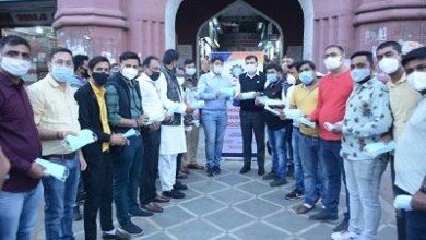 छत्तीसगढ़ चेम्बर ऑफ कामर्स एंड इंडस्ट्रीज-युवा चेम्बर द्वारा जय स्तंभ चैक रविभवन में मास्क वितरण कर जन जागरण अभियान का शुभारंभ किया गया