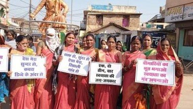 चौक चौराहों की दशा सुधारने महिलाएं बना रही मानव श्रृंखला