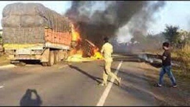 CG: नेशनल हाइवे में दो ट्रकों के बीच जबरदस्त भिडंत, लगी आग