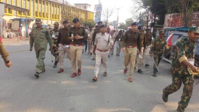 शहर के मुख्य मार्गों में पुलिस ने किया फ्लैग मार्च…