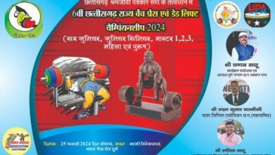 छत्तीसगढ़ राज्य स्तरीय बेंच प्रेस प्रतियोगिता व डेड लिफ्ट प्रतियोगिता का आयोजन 25 फरवरी को….