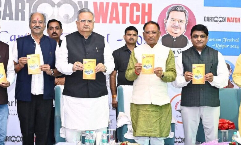 मुख्यमंत्री श्री विष्णु देव साय आज राजधानी रायपुर के एक निजी होटल में कार्टून वॉच पत्रिका द्वारा आयोजित कार्टून फेस्टिवल-2024 में शामिल हुए। मुख्यमंत्री श्री विष्णुदेव साय ने कार्टून फेस्टिवल-2024 कार्यक्रम को संबोधित करते हुए कहा कि कार्टून एक ऐसी कला जिसके द्वारा बहुत थोड़ी जगह में पूरी बात को स्पष्टता के साथ मनोरंजक और व्यंगात्मक ढंग से व्यक्त किया जाता है। छोटा सा कार्टून बड़ी बात कहता है। कभी-कभी सम्पादकीय में जिस बात को आधे पेज में लिखा जाता है, उसे सिर्फ एक कार्टून के माध्यम से व्यक्त कर दिया जाता है ।मुख्यमंत्री श्री साय ने कार्टून फेस्टिवल में इंदौर के कार्टूनिस्ट श्री इस्माइल लहरी को कार्टून क्षेत्र में उनके विशेष योगदान के लिए सम्मानित किया। साथ ही उन्होंने कार्टून फेस्टिवल में संत श्री तुलसीदास जी के दोहों पर आधारित कार्टून पुस्तक ‘तुलसी सुगन्ध’ का विमोचन भी किया। मुख्यमंत्री श्री साय ने कहा कि इस कार्टून फेस्टिवल में शामिल होना मेरे लिए बहुत आनन्द का विषय है। यह बहुत खुशी की बात है कि कार्टून वॉच परिवार लगातार 28 वर्षों से कार्टून के क्षेत्र में कार्य को कर रहा है। श्री त्रयम्बक शर्मा कार्टून की पूरी मैगज़ीन निकाल रहे हैं, जो कि बहुत बड़ी बात है। इसके लिए मैं कार्टून वॉच परिवार को बहुत बधाई एवं शुभकामनाएं देता हूँ। कार्यक्रम में विधानसभा अध्यक्ष डॉ रमन सिंह ने कहा कि कार्टून वॉच मैगज़ीन के 28 साल की सतत यात्रा रही है। कार्टून एक ऐसा माध्यम जो समाज को आईना दिखाता है। कार्टून कभी गुदगुदाता है तो कभी ऐसी कड़वी दवाई की तरह होता है, जिसका परिणाम अच्छा होता है। कार्टूनिस्ट देश की परिस्थिति को कलम से अभिव्यक्त करता है। वह समाज को नई दिशा देता है । कार्टून और एनिमेशन समाज के सभी वर्गों को प्रभावित करते हैं।इस अवसर पर सांसद श्री बृजमोहन अग्रवाल ने कहा कि कार्टूनिस्ट श्री त्रयम्बक शर्मा ने कार्टून की विधा को जिंदा रखा है। वे कार्यक्रम के जरिये नई पीढ़ी तक कार्टून को पहुंचा रहे हैं । इस मौके पर कार्टून विधा से जुड़े डॉ के सी पन्त और मुख्यमंत्री के प्रेस अधिकारी श्री आलोक सिंह सहित अन्य लोगों को सम्मानित किया गया। कार्यक्रम में विधानसभा अध्यक्ष डॉ रमन सिंह, रायपुर सांसद श्री बृजमोहन अग्रवाल, डॉ हिमांशु द्विवेदी, श्री इस्माइल लहरी, कार्टून वॉच के सम्पादक श्री त्रयम्बक शर्मा सहित कई कार्टूनिस्ट और साहित्य-कला क्षेत्र से गणमान्य-जन उपस्थित रहे।