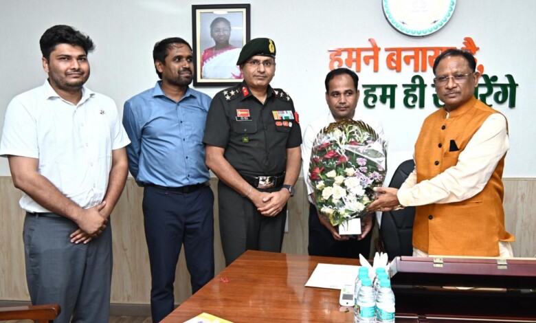 रायपुर :मुख्यमंत्री श्री विष्णु देव साय को राजधानी रायपुर में आगामी 05 और 06 अक्टूबर को आयोजित होने वाले सशस्त्र सैन्य समारोह में शामिल होने का भारतीय सेना के ब्रिगेडियर श्री अमन आनंद और कलेक्टर डॉ. गौरव सिंह ने आमंत्रण दिया।इस अवसर पर नगर निगम आयुक्त श्री अबिनाश मिश्रा एवं सीईओ जिला पंचायत श्री विश्वदीप भी उपस्थित थे।