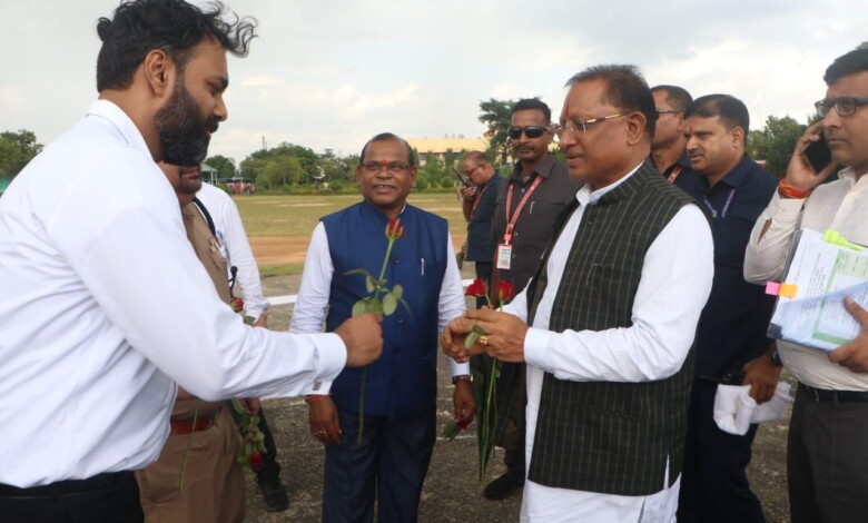 रायपुर : इस अवसर पर जनप्रतिनिधियों, अधिकारियों एवं राज्य के पहले आवासीय वाॅलीवाल अकादमी बिश्रामपुर के खिलाडियों द्वारा मुख्यमंत्री का पुष्पगुच्छ एवं फूल माला से आत्मीय स्वागत किया गया।