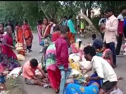 रामकृष्ण मिशन आश्रम के सामने ट्रैक्टर-ट्रॉली पलट गई, हादसे में एक दर्जन से अधिक ग्रामीण घायल हो गए।