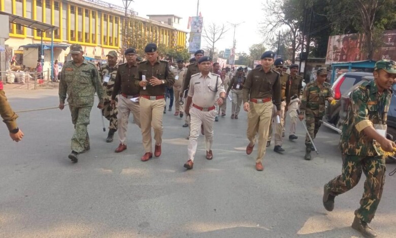 अगामी लोकसभा चुनाव को लेकर जिले में वीआईपी मूव्हमेंट को देखते हुए जिला पुलिस सुरक्षा के चौक चौबंद व्यवस्था की गई है । एसपी दिव्यांग पटेल के निर्देशन पर होटल, ढाबा, लॉज चेक कर बाहर से ठहरे मुसाफिरों की सघन जांच किया जा रहा है । इसी क्रम में आज दोपहर अधिकारियों ने शहर के प्रमुख मार्ग पर सुरक्षा बलों ने फ्लैग मार्च कर सुरक्षा व्यवस्था का जायजा लिया गया ।