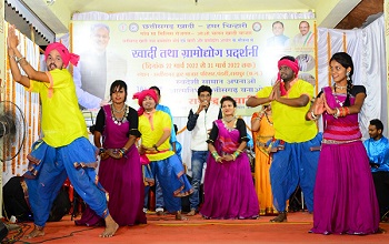 रायपुर / रायपुर के पंडरी स्थित छत्तीसगढ़ हाट परिसर में छत्तीसगढ़ खादी तथा ग्रामोद्योग बोर्ड द्वारा आयोजित 10 दिवसीय राज्य स्तरीय खादी एवं ग्रामोद्योग प्रदर्शनी में छत्तीसगढ़ी लोक गीत एवं नृत्य लोगों को लुभा रहा है। छत्तीसगढ़ के लोक कलाकार यहां संस्कृति विभाग के सौजन्य से अपनी प्रस्तुति दे रहे हैं।