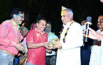 रायपुर प्रेस क्लब के पदाधिकारियों ने मुख्यमंत्री का स्वागत फूल गोभी और कटहल से किया। मुख्यमंत्री को विशेष तौर पर बनाई गई सुनहरी टोपी और माला भी पहनाई गई। मुख्यमंत्री ने सभी पत्रकारों को होली की शुभकामनाएँ देते हुए देश और प्रदेश के लिए सुख, समृद्धि और खुशहाली की कामना की।