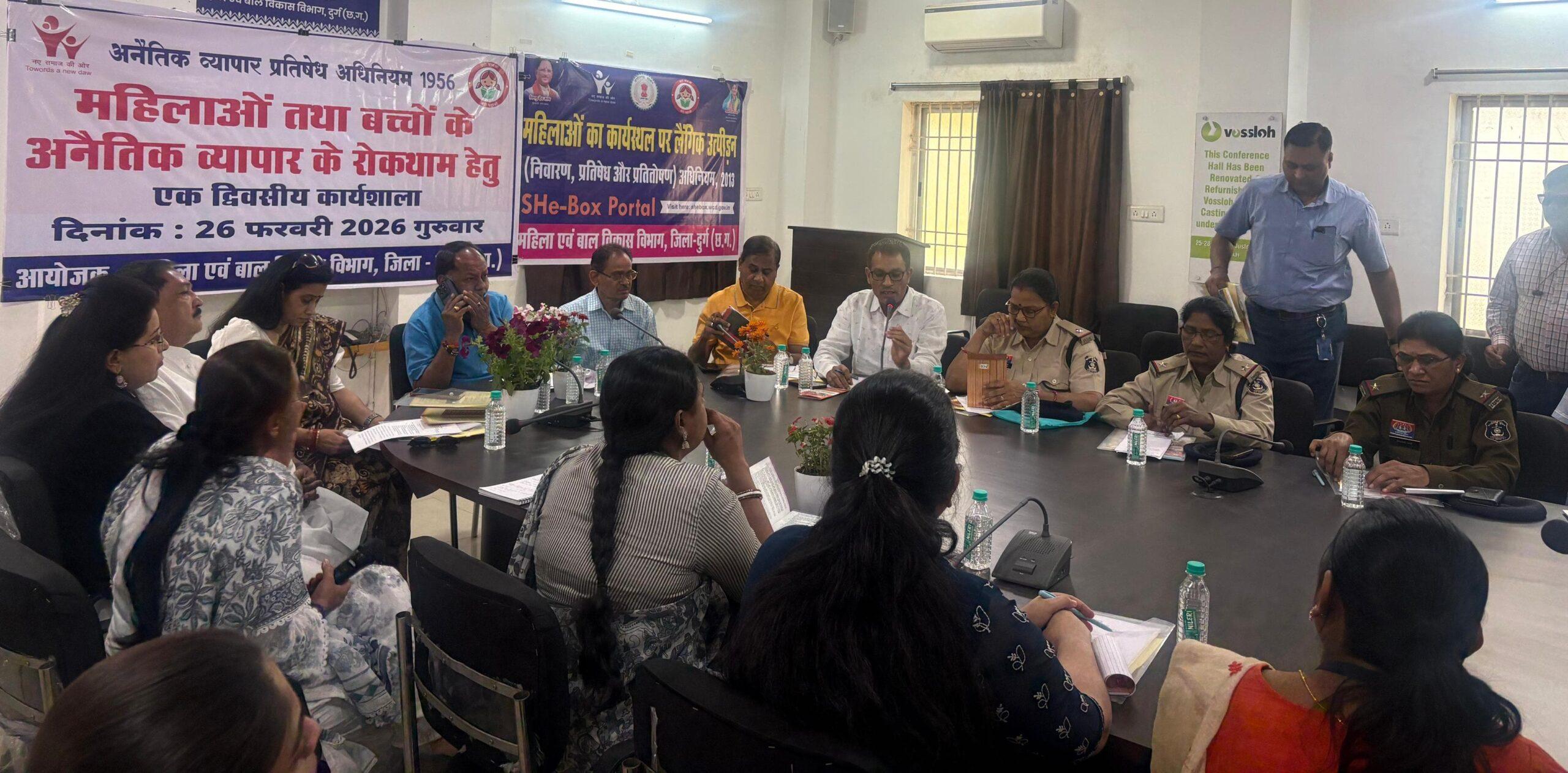 दुर्ग। जिला कार्यक्रम अधिकारी, महिला एवं बाल विकास विभाग के प्रेरणा सभा कक्ष में आज महिलाओं एवं बच्चों से संबंधित महत्वपूर्ण कानूनों पर जिला स्तरीय एक दिवसीय प्रशिक्षण सह कार्यशाला का आयोजन किया गया। कार्यशाला में महिलाओं तथा बच्चों के अनैतिक व्यापार (निवारण) अधिनियम, 1956, महिलाओं का कार्यस्थल पर लैंगिक उत्पीड़न (निवारण, प्रतिषेध और प्रतितोष) अधिनियम, 2013 तथा शी-बाक्‍स पोर्टल के प्रावधानों पर विस्तृत जानकारी दी गई। कार्यक्रम का शुभारंभ जिला कार्यक्रम अधिकारी श्री आर.के. जाम्बुलकर द्वारा अतिथियों एवं प्रतिभागियों के स्वागत के साथ किया गया। कार्यशाला में अनैतिक व्यापार (निवारण) अधिनियम 1956 के संबंध में एडिशनल एस.पी. श्रीमती चित्रा वर्मा ने विस्तृत जानकारी प्रदान की।
