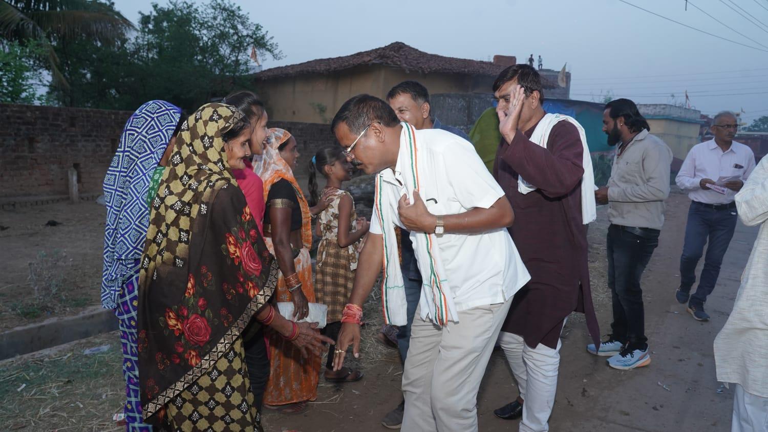 दुर्ग। दुर्ग लोकसभा क्षेत्र से कांग्रेस उम्मीदवार राजेन्द्र साहू ने दुर्ग ग्रामीण विधानसभा क्षेत्र के अंतर्गत विभिन्न ग्रामों का दौरा कर कांग्रेस पार्टी के पक्ष में मतदान करने का निवेदन किया जिसे सहर्ष स्वीकार करते हुए सभी लोंगो ने एक सुर में पंजा छाप में बटन दबाकर भारी मतों से जिताने का संकल्प लिया।